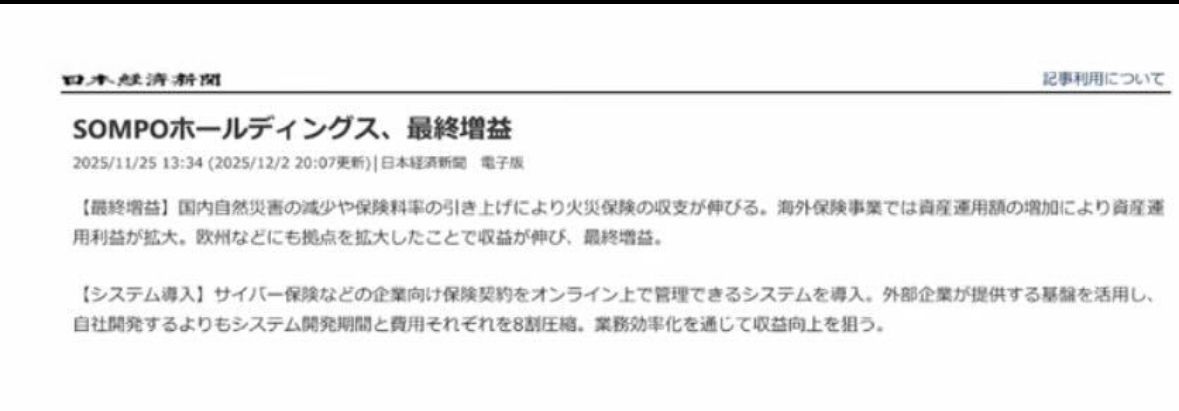 [System Introduction] The company has introduced a system allowing online management of corporate insurance contracts, such as cyber insurance. By utilizing a platform provided by an external company [Protosure], development time and costs were each compressed by 80% compared to in-house development. The company aims to improve profitability through operational efficiency.